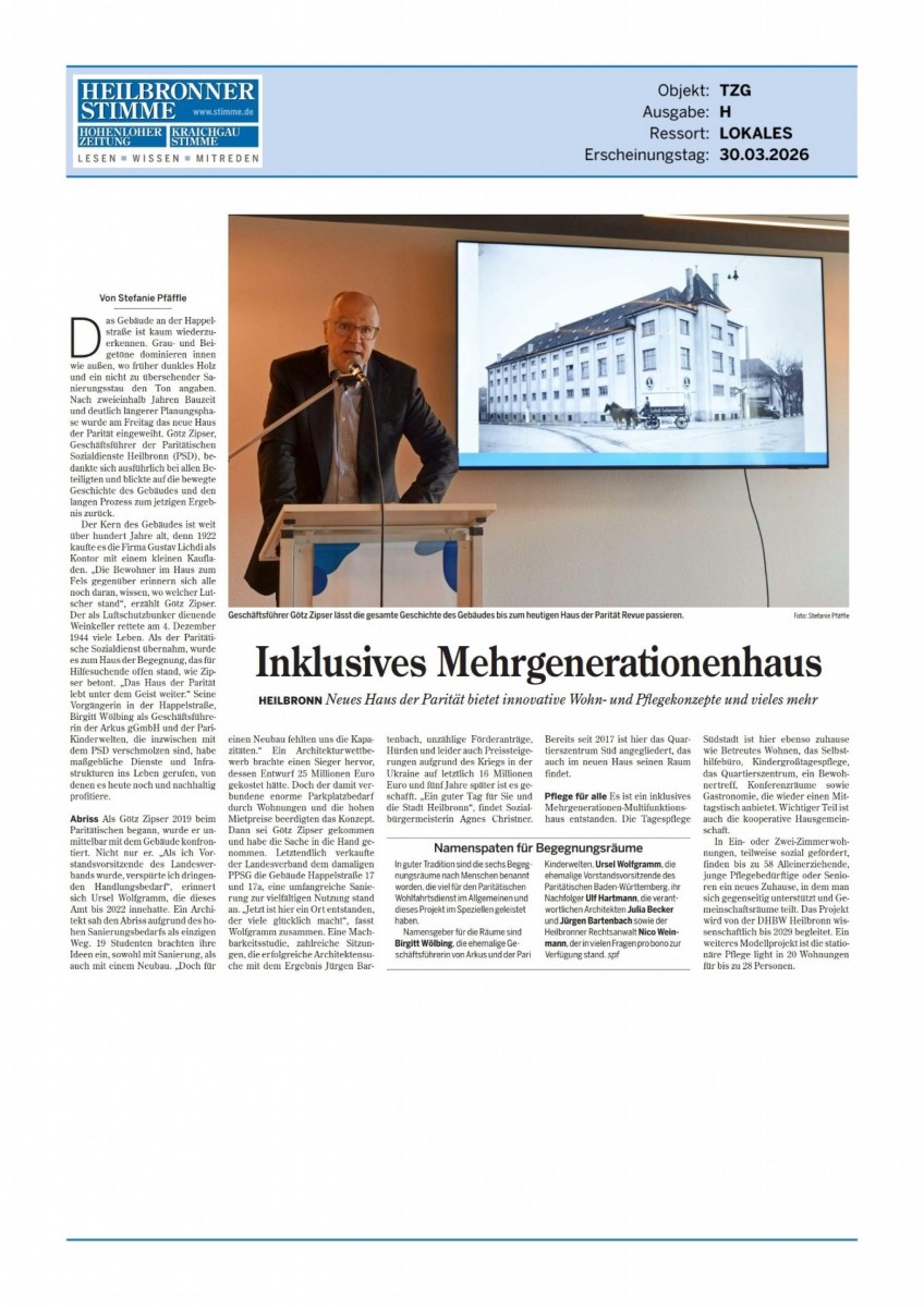 Artikel der Heilbronner Stimme vom 30.03.2026